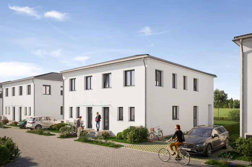 - Elektrisch bedienbare Aufsatzrollläden aus Aluminium mit Funksteuerung - Luft-Wasser-Wärmepumpe von Vaillant mit integriertem Warmwasserspeicher - Angenehmes Raumklima durch Fußbodenheizung in allen Räumen mit Ausnahme Hausanschlussraum - Innentreppe vom Erdgeschoss ins Obergeschoss als lackierte Stahlkonstruktion mit Holztrittstufen aus Buche (ohne Setzstufen) - Laminat in Fluren, Küche und allen Aufenthaltsräumen - Sonderwunsch: Verlegung von Vinyl Designbelag, Parkett oder Fliesen gegen Aufpreis möglich. - Keramische Bodenfliesen in Gäste-WC, Bad und Hausanschlussraum - Hochwertige Sanitärkeramik, Farbe weiß, im Gäste-WC und Bad - Elektrische Handtuchheizkörper in Gäste-WC und Bad - Terrasse mit grauen Betonwerksteinplatten - PKW-Stellplatz und Stellplatz mit Rasengittersteinen - Glasfaseranschluss für schnelles Internet vorhanden - Vorbereitung für Wallbox-Installation am PKW-Stellplatz