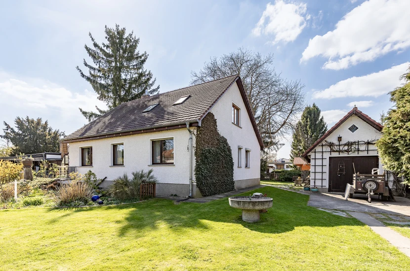 - Einfamilienhaus mit 5 Zimmern und Terrasse - vielseitige Nutzungsmöglichkeiten (auch Mehrgenerationenwohnen) Erdgeschoss: - Einbauküche - Badezimmer mit Badewanne und Dusche - Gäste-WC - großzügiges Wohnzimmer - zwei weitere Zimmer (z. B. Schlaf-, Kinder- oder Arbeitszimmer) - Gewächshaus Dachgeschoss: - flexibel nutzbar - zwei Zimmer - Kochnische - Duschbad Grundstück: - in drei Flurstücke aufgeteilt - vorderes Grundstück mit zusätzlichem Entwicklungspotenzial - Garage, Werkstatt und ein Carport
